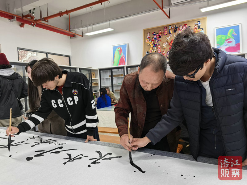 書法區(qū)前,老師手把手教大家握筆運筆,墨汁在宣紙上暈開,留學(xué)生們認真臨摹著自己的中文名字,直到寫出滿意的字跡,小心翼翼地鋪平宣紙晾干,眼里充滿了好奇。