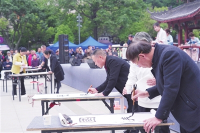 ③綿陽開放大學(xué)老年學(xué)員揮毫潑墨,展示學(xué)習(xí)成果。