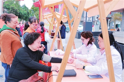 另一邊,活動現(xiàn)場設(shè)置的“蜀里銀齡·樂享美好”展示展銷區(qū)、“天府有禮”展區(qū)、適老體驗區(qū),各種特色產(chǎn)品琳瑯滿目;“溫暖孝老區(qū)”,綿陽市中心醫(yī)院、綿陽市中醫(yī)院的義診臺前排起了長隊,一句句叮囑,傳遞著醫(yī)者仁心;一旁的志愿服務(wù)點同樣忙碌,免費理發(fā)等便民服務(wù),讓老人們臉上洋溢著幸福的笑容。