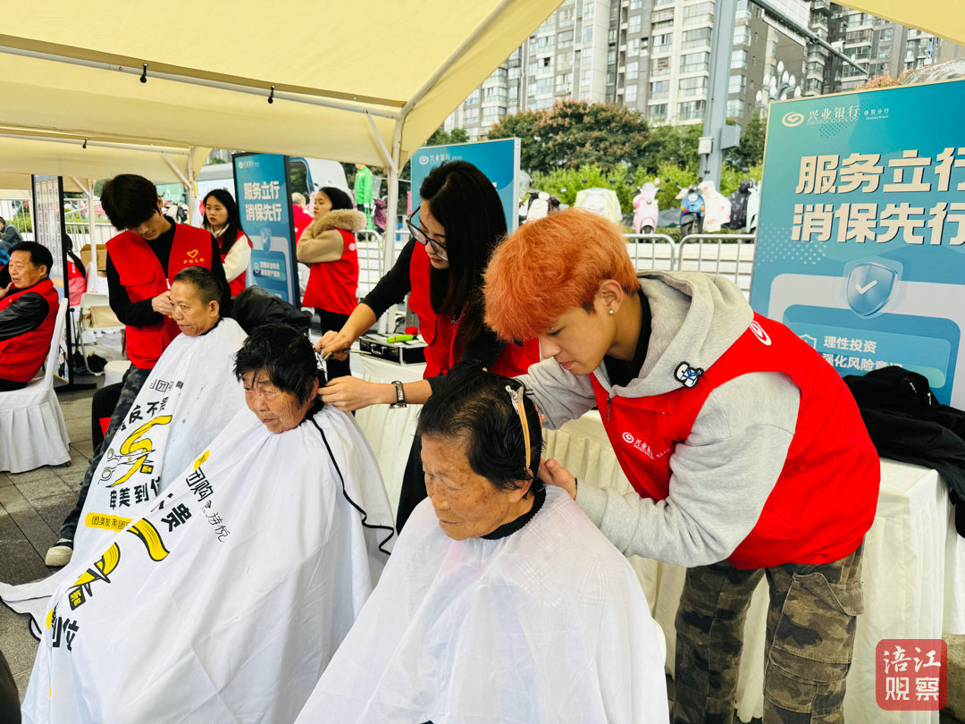 一旁的志愿服務(wù)點(diǎn)同樣忙碌,免費(fèi)理發(fā)等便民服務(wù),讓老人們臉上洋溢著幸福的笑容。