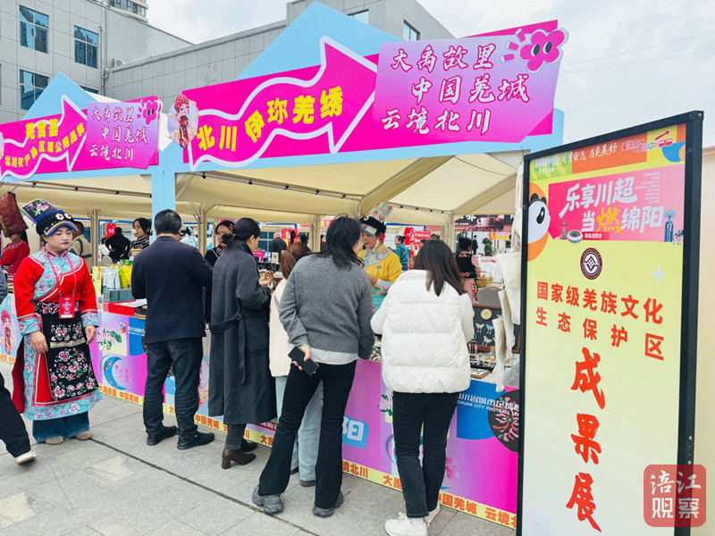旁邊還有北川水磨漆、精巧的羌繡工藝品,野生菌菇、高山茶葉、百花蜜等土特產(chǎn)琳瑯滿目,以及“2025年川超及羌?xì)v年期間商旅優(yōu)惠活動(dòng)”、北川旅游線路等。