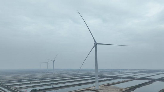 圖為在山東東營并網(wǎng)發(fā)電的26兆瓦級海上風(fēng)電機組。新華社發(fā)