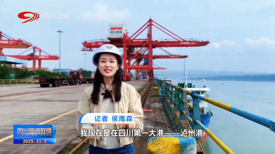 記者 侯雨森:我現(xiàn)在在四川第一大港——瀘州港,在我身后,一艘從上海駛來的貨輪剛剛???,橋吊正將集裝箱從貨船上吊出,并送往堆場等待轉(zhuǎn)運。我們也感受到了四川水運的強勁脈動。