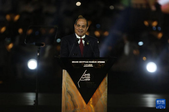 11月1日,在埃及吉薩,埃及總統(tǒng)塞西在開館儀式上致辭。