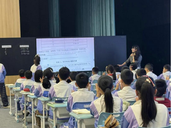 數(shù)學組王婷老師的《用字母表示數(shù)》,以 “學科融合” 與 “學生主體”為亮點,重塑數(shù)學課堂形態(tài)。課堂設(shè)計突破單一知識傳授,融入生活場景素材(如用字母表示家庭成員年齡、物體重量關(guān)系),實現(xiàn)數(shù)學與生活的深度聯(lián)結(jié);教學過程中,王老師通過 “任務(wù)驅(qū)動 - 小組交流 - 自我展示” 的環(huán)節(jié)設(shè)計,充分放權(quán)給學生 —— 讓學生自主嘗試用字母表達數(shù)量關(guān)系、質(zhì)疑同伴思路,不僅達成 “理解用字母表示數(shù)的意義” 這一知識目標,更培養(yǎng)了學生的邏輯思維與表達能力,真正踐行 “將課堂還給學生” 的課改理念。