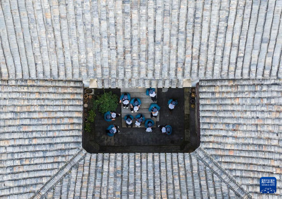 11月2日,繡娘代表在湖北省宜昌市秭歸縣屈原故里景區(qū)羋繡館參加刺繡技藝比賽(無人機(jī)照片)。