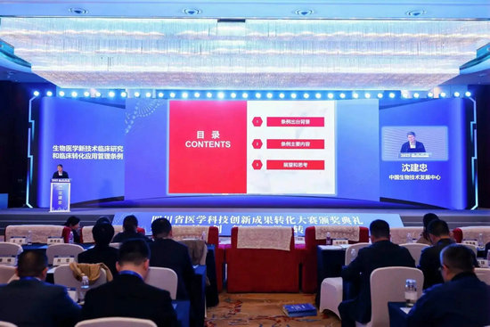 11月3日,四川省醫(yī)學(xué)科技創(chuàng)新成果轉(zhuǎn)化大賽頒獎典禮暨科技創(chuàng)新成果轉(zhuǎn)化大會在成都舉辦。本次大賽以“鼎新·發(fā)展·科促·領(lǐng)航”為主題,涵蓋藥物、器械、醫(yī)療技術(shù)、“一帶一路”四大賽道162個(gè)項(xiàng)目。經(jīng)過激烈角逐,最終評選出一等獎7項(xiàng)、二等獎10項(xiàng)、三等獎17項(xiàng)。