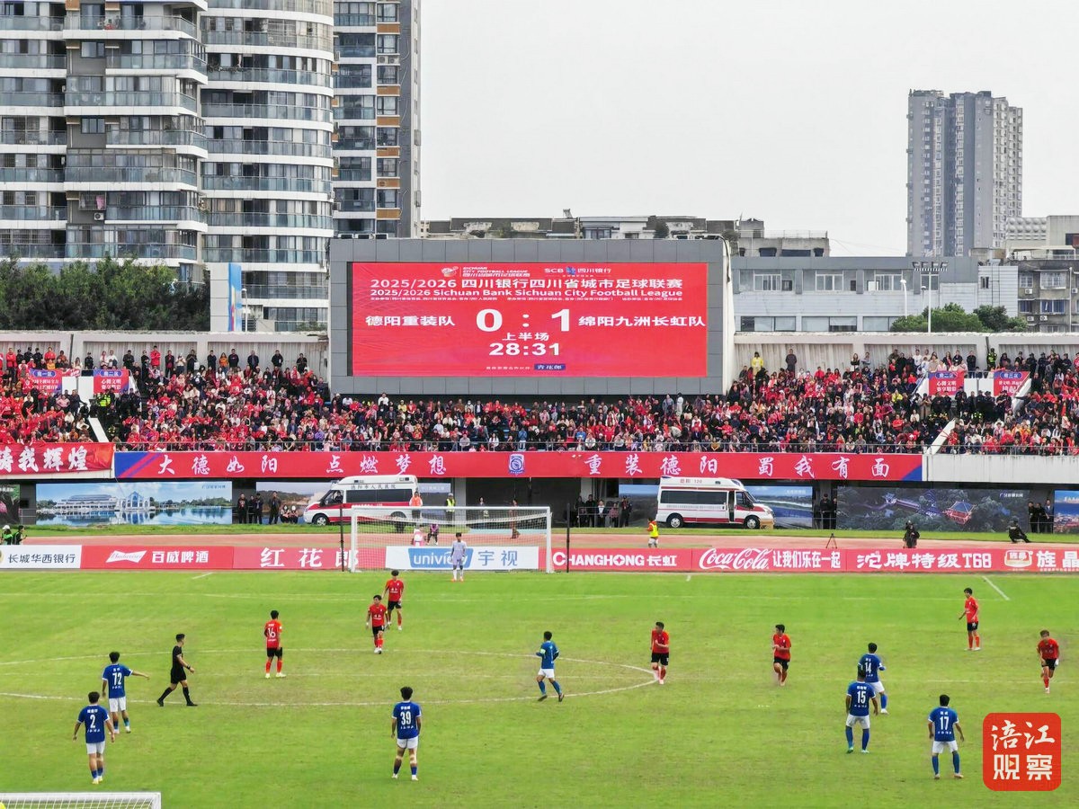 11月9日下午3點,綿陽九洲長虹隊客場對陣東道主德陽重裝隊的比賽,在德陽市體育公園體育場精彩上演,兩地球迷齊聚現(xiàn)場,共同見證這場綠茵盛宴。