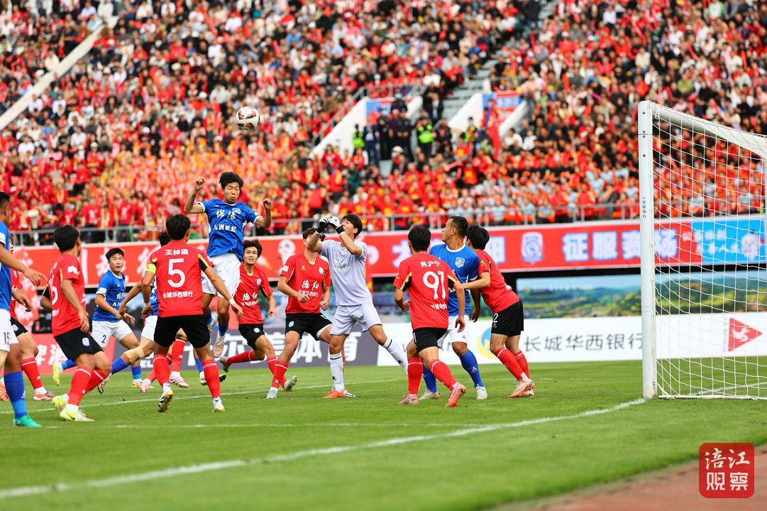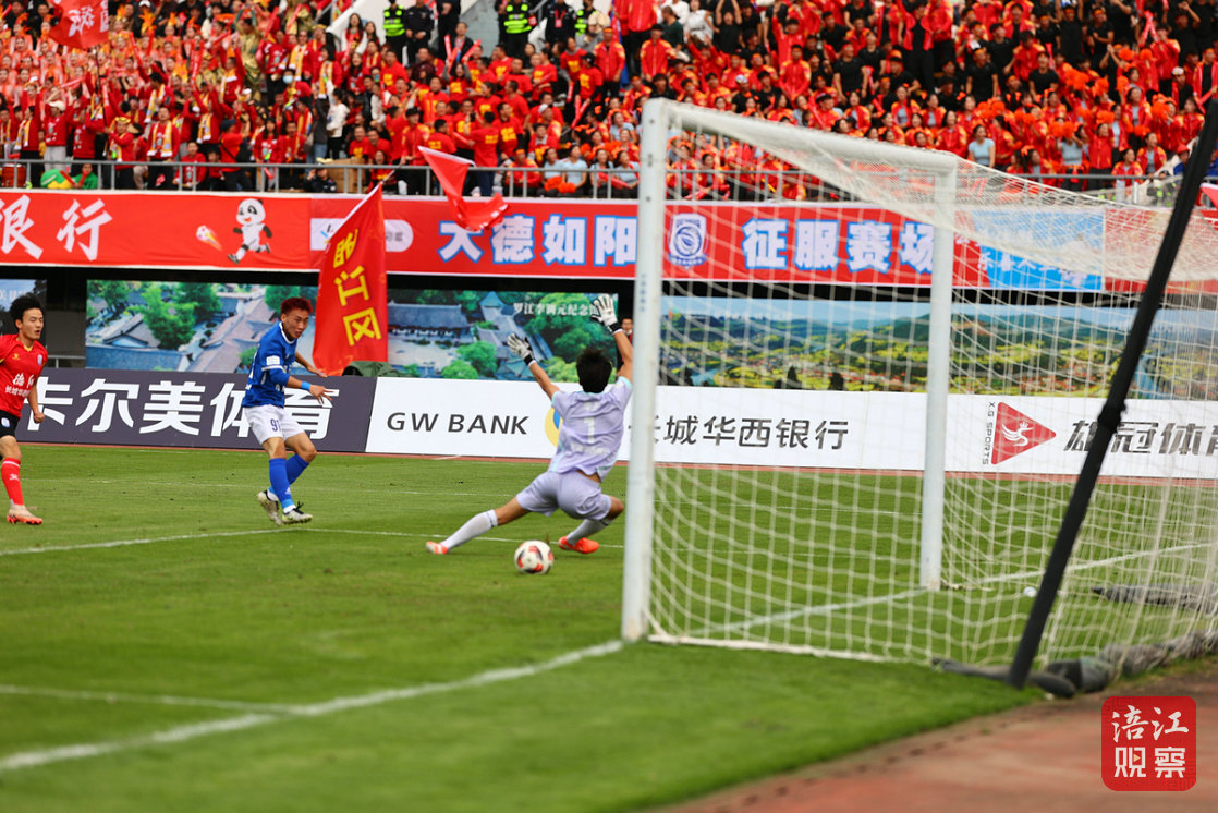 比賽第42分鐘,德陽隊在禁區(qū)踢進一球,將比分追平。