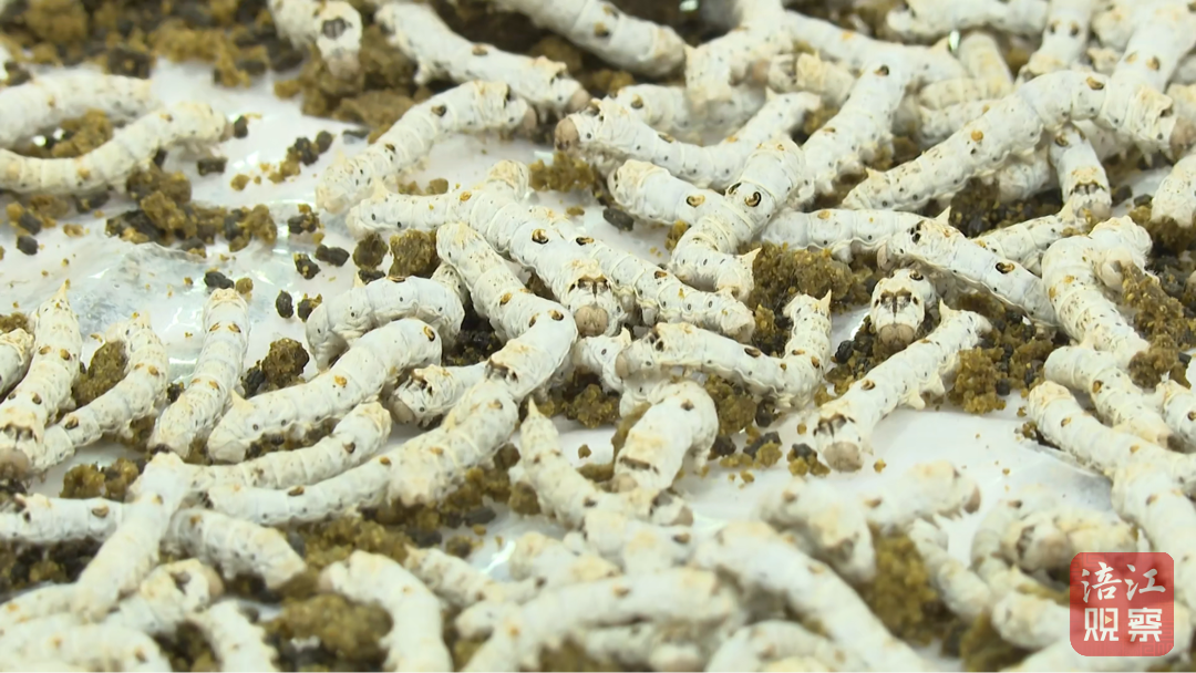 11月10日,在鹽亭縣同益新絲綢全產(chǎn)業(yè)鏈項(xiàng)目的智能化養(yǎng)蠶車間內(nèi),記者看到一條條白胖胖的蠶寶寶正在標(biāo)準(zhǔn)化蠶臺(tái)上,專注啃食著均勻鋪開的深綠色顆粒。這不是普通的顆粒,而是由桑葉精深加工制成的“復(fù)合營養(yǎng)餐”。