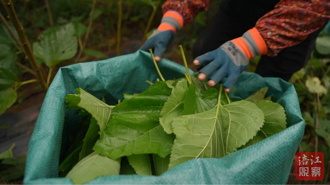沿著飼料的源頭追溯,綠意依然在田間蔓延。在黃甸鎮(zhèn)定光村連片的桑園里,村民趙德偉和工友們正忙碌地采摘著今春的桑葉。但與過去不同,這些桑葉不再直接喂蠶,而是作為核心原料被送往車間進(jìn)行脫水制粉。