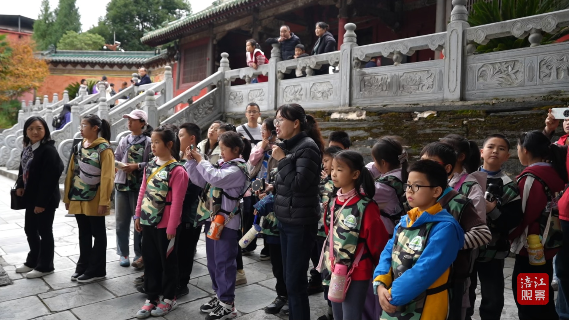 被譽(yù)為“深山故宮”的報(bào)恩寺,是秋假研學(xué)的核心熱門(mén)地。晨光里,這座保存完好的明代古建筑群人潮涌動(dòng),一波波親子游客駐足觀賞。不少家長(zhǎng)特意選擇此時(shí)帶孩子前來(lái),感受五百余年古寺的獨(dú)特魅力。