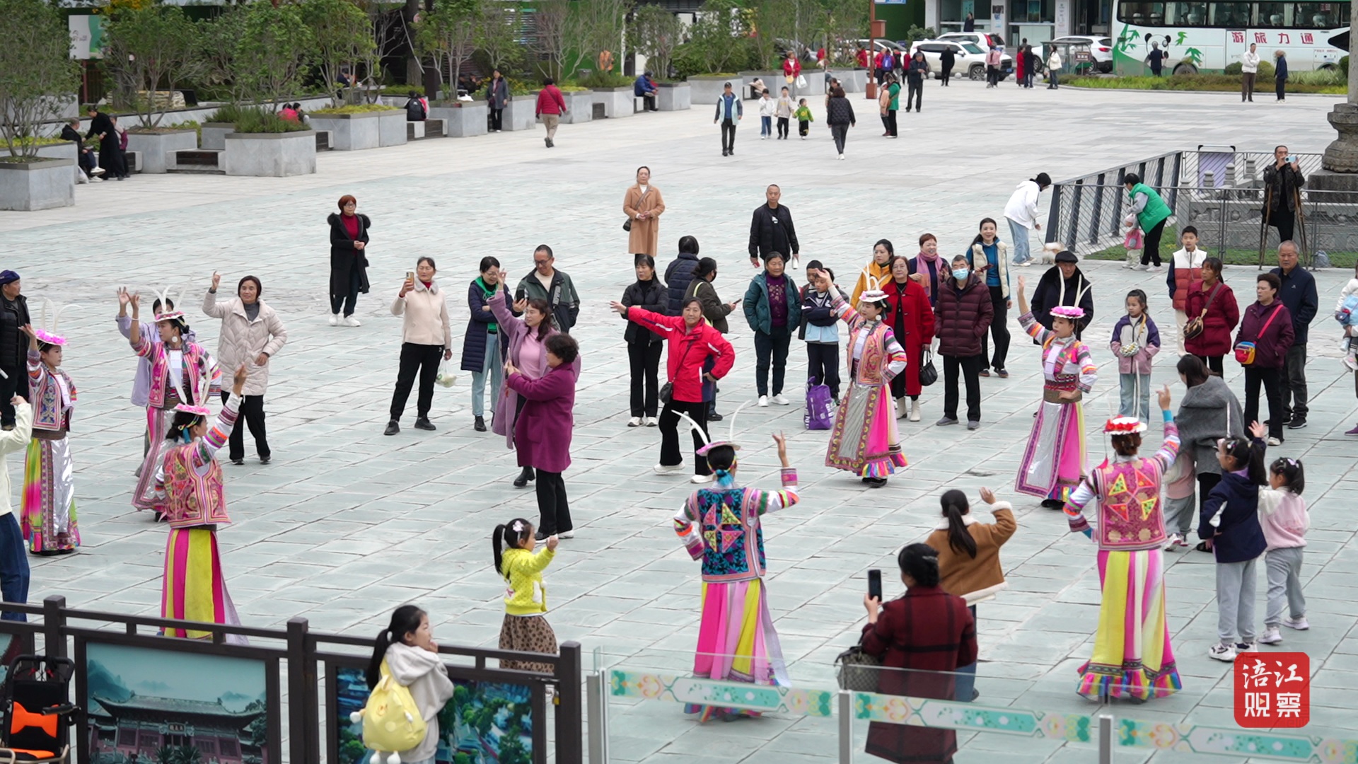 “我們想讓孩子學(xué)習(xí)中國(guó)傳統(tǒng)文化,同時(shí)感受大自然的山水。”游客袁先生的想法道出了眾多家長(zhǎng)的心聲。學(xué)生何鈺芊也有同感:“課本上的描述終究抽象,親身經(jīng)歷后更能理解課文,也更壯觀。”在游客范子嫣眼中,報(bào)恩寺“不是冰冷的建筑物,而是活著的教科書(shū)”。廣場(chǎng)上的非遺龍州體驗(yàn)區(qū)同樣熱鬧,孩子們?cè)诮橙酥笇?dǎo)下繪制漆藝扇面,參與鳳仙染甲體驗(yàn),沉浸式感受傳統(tǒng)手工藝的魅力。