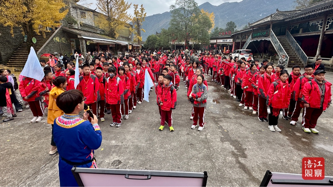12日上午10時(shí),景區(qū)入口處已人頭攢動(dòng),散客與研學(xué)團(tuán)隊(duì)共同構(gòu)成一幅熱鬧的秋假出游畫(huà)卷。中午時(shí)分,來(lái)自成都市武侯區(qū)領(lǐng)川外國(guó)語(yǔ)學(xué)校的380名學(xué)生統(tǒng)一著裝,抵達(dá)景區(qū)開(kāi)展以“探秘羌寨古韻·傳承非遺文脈”為主題的秋季研學(xué)實(shí)踐。