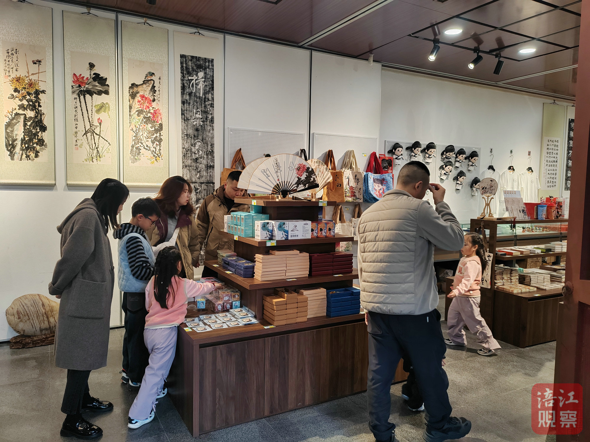 據(jù)了解,針對(duì)秋假學(xué)生客流,李白紀(jì)念館特別推出了蓋戳打卡、“李白”IP形象文創(chuàng)挑戰(zhàn)賽等活動(dòng)。小朋友可通過(guò)互動(dòng)游戲與“詩(shī)仙”對(duì)話(huà),體驗(yàn)科技感與趣味性。