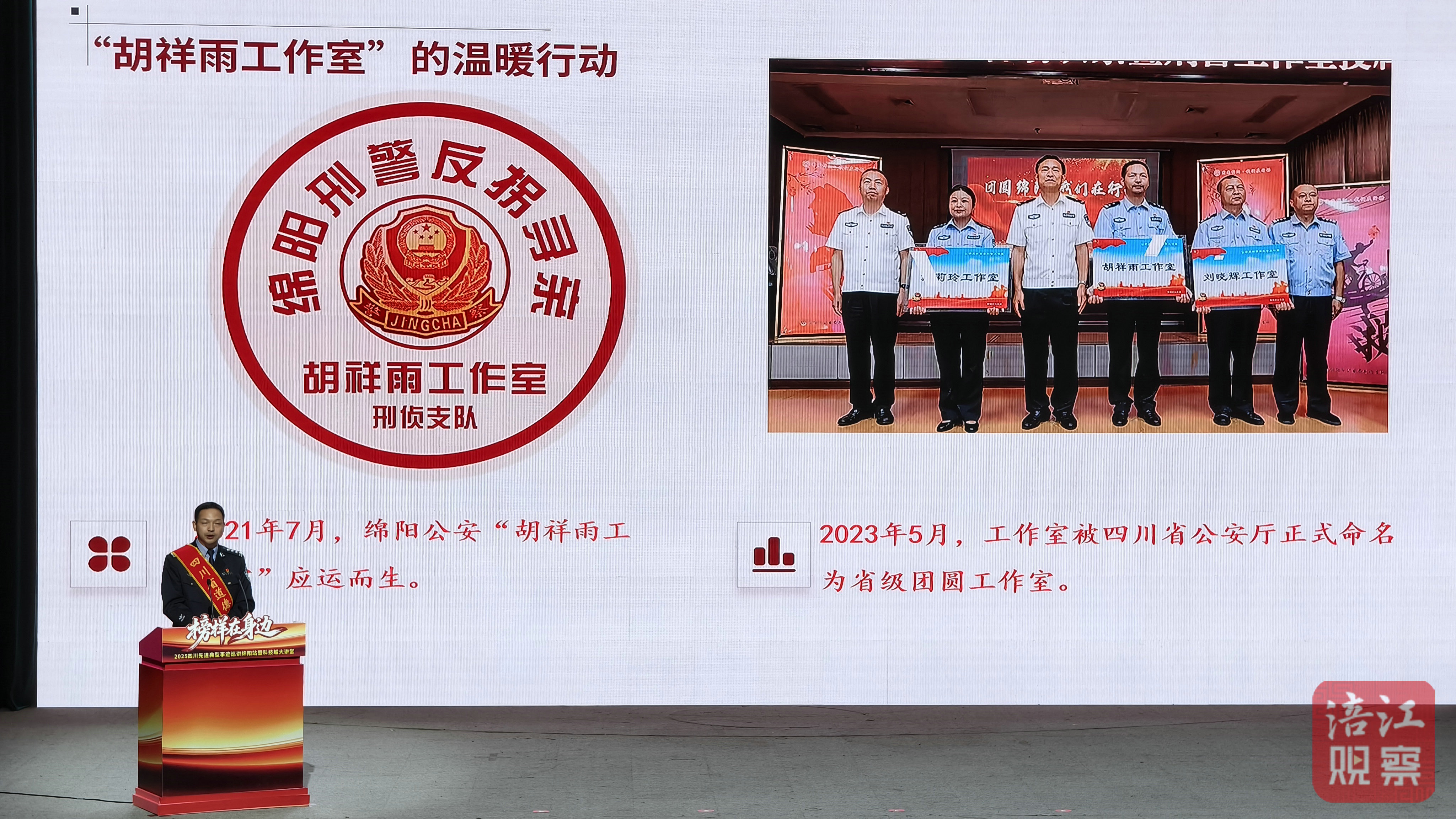 “每面錦旗背后,都是一個離散家庭的重新?lián)肀А?rdquo;綿陽市公安局刑偵支隊一大隊教導(dǎo)員胡祥雨的話語質(zhì)樸深情。26年從警生涯中,他從警犬訓(xùn)導(dǎo)員轉(zhuǎn)變?yōu)槿罕娍谥?ldquo;有溫度的胡叔叔”,6年間承接全國尋親求助5萬余次,促成792個家庭團圓。當(dāng)他念出被拐者“胡叔叔,我想見我媽”的微信留言時,臺下不少觀眾悄悄擦拭眼角。