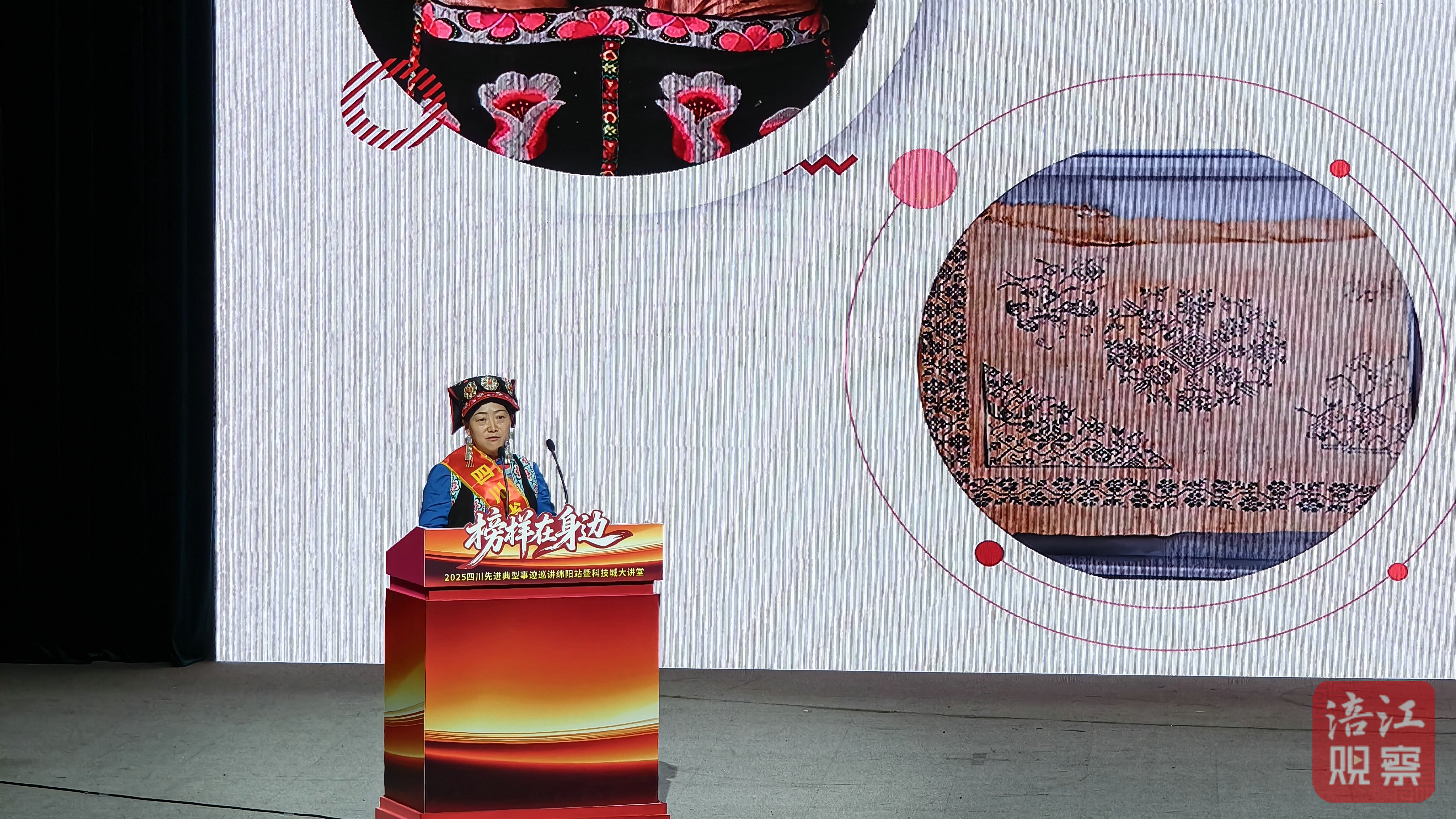 “我只是一個普通的羌族女兒,用四根銀針,繡出三份承諾。”北川羌繡傳承人陳云珍聲音溫和卻堅定。歷經(jīng)“5·12”汶川特大地震創(chuàng)傷,她在廢墟中重拾繡針,立下“讓羌繡走出大山”的誓言。10余年來,她足跡遍布北川19個鄉(xiāng)鎮(zhèn),免費培訓(xùn)繡娘2萬余人次,帶動500余名婦女居家就業(yè)。當(dāng)她講到運動員身著帶有羌繡的服裝站上國際賽場、傳統(tǒng)文化綻放在世界舞臺時,臺下響起熱烈的掌聲。