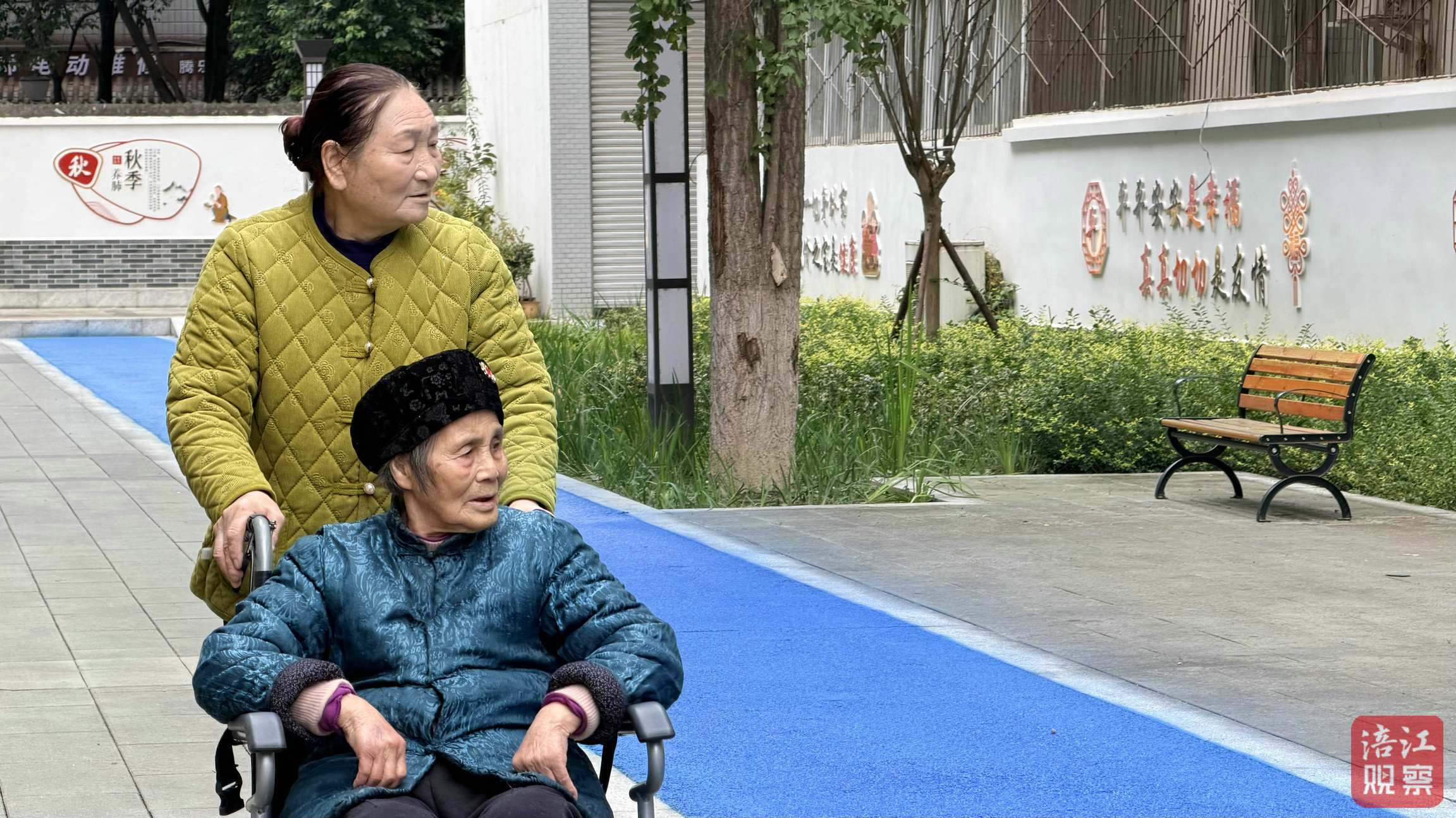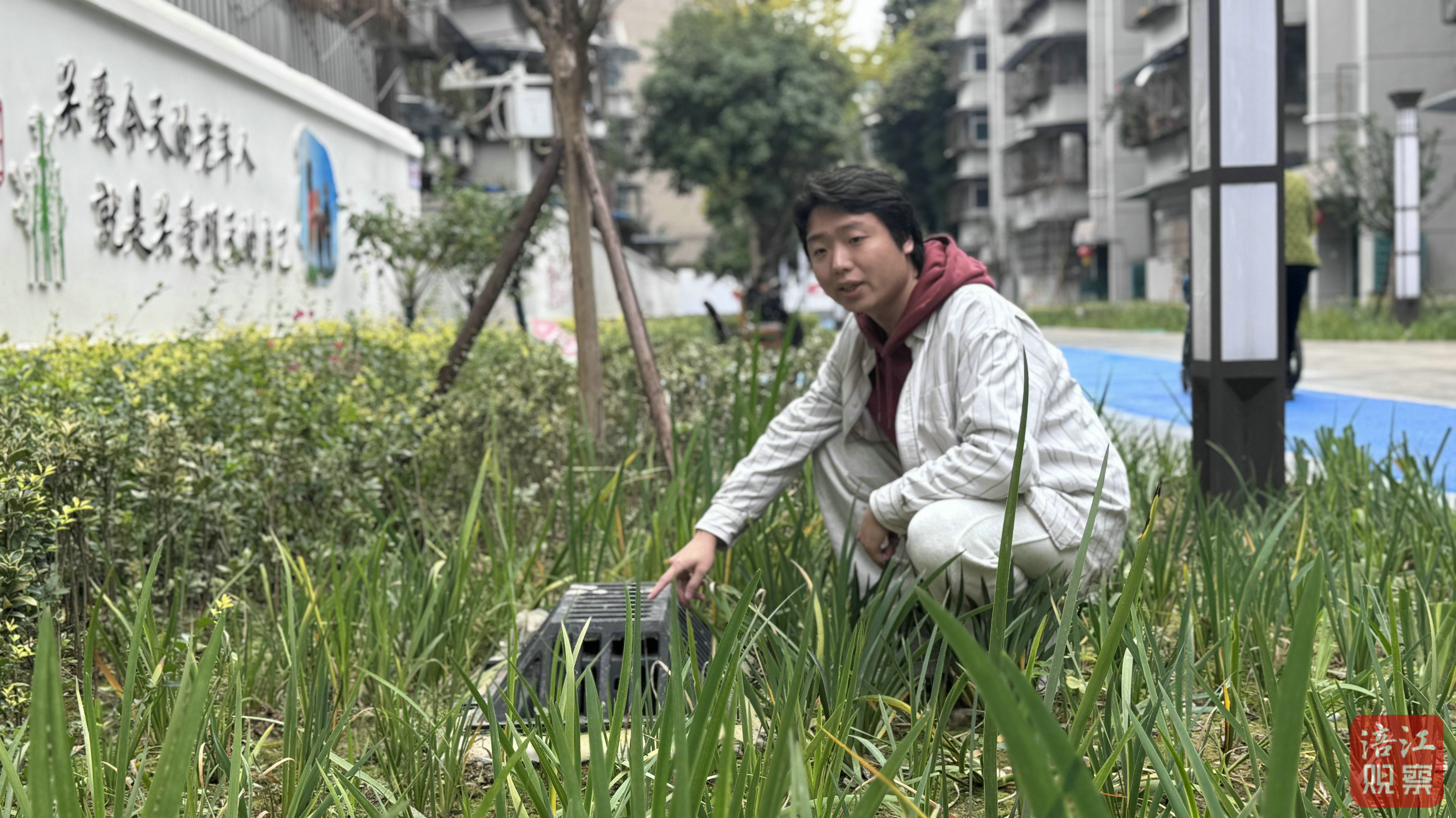 生態(tài)草溝穿行于綠植之間,隱形管網(wǎng)深埋土層,這套完整的“海綿”體系在雨季高效疏導積水,也為老人出行筑起一道安全防線。