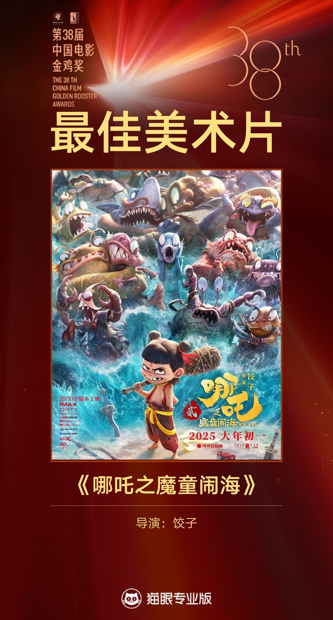 與此同時,由成都可可豆動畫影視有限公司制作出品的《哪吒之魔童鬧?!?同樣不負眾望,榮獲最佳美術片獎。這部續(xù)作影片延續(xù)了前作的輝煌,總票房突破159億元,躋身全球影史票房榜前5。