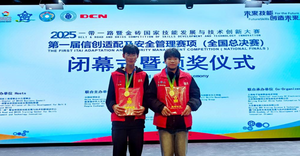 在上海舉辦的“2025年一帶一路暨金磚國家技能發(fā)展與技術(shù)創(chuàng)新大賽首屆信創(chuàng)適配及安全管理賽項(xiàng)全國總決賽”中,面對(duì)來自全國的126支頂尖隊(duì)伍,梓潼“七一”職中代表隊(duì)成員陳秦雨、李晨憑借精湛技藝與穩(wěn)定發(fā)揮,經(jīng)過激烈角逐,成功摘得一等獎(jiǎng)桂冠。