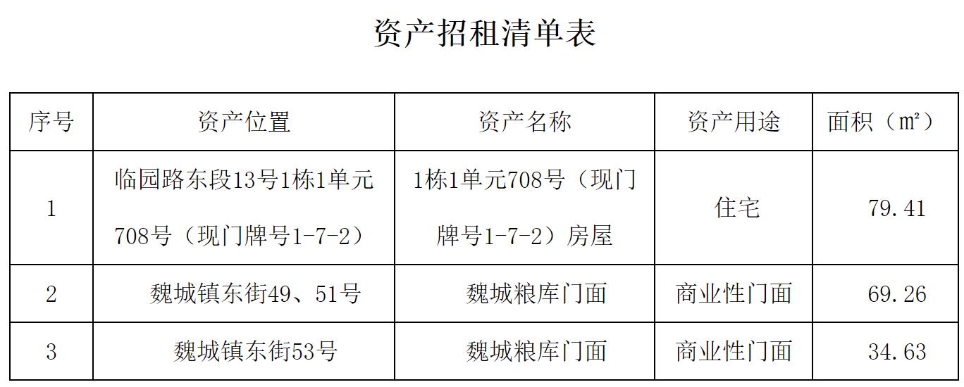 綿陽市儲備糧管理有限公司現(xiàn)將權(quán)屬和代管的部分資產(chǎn)面向社會進(jìn)行公開競價(jià)招租(詳見《資產(chǎn)招租清單表》),有關(guān)事宜公告如下: