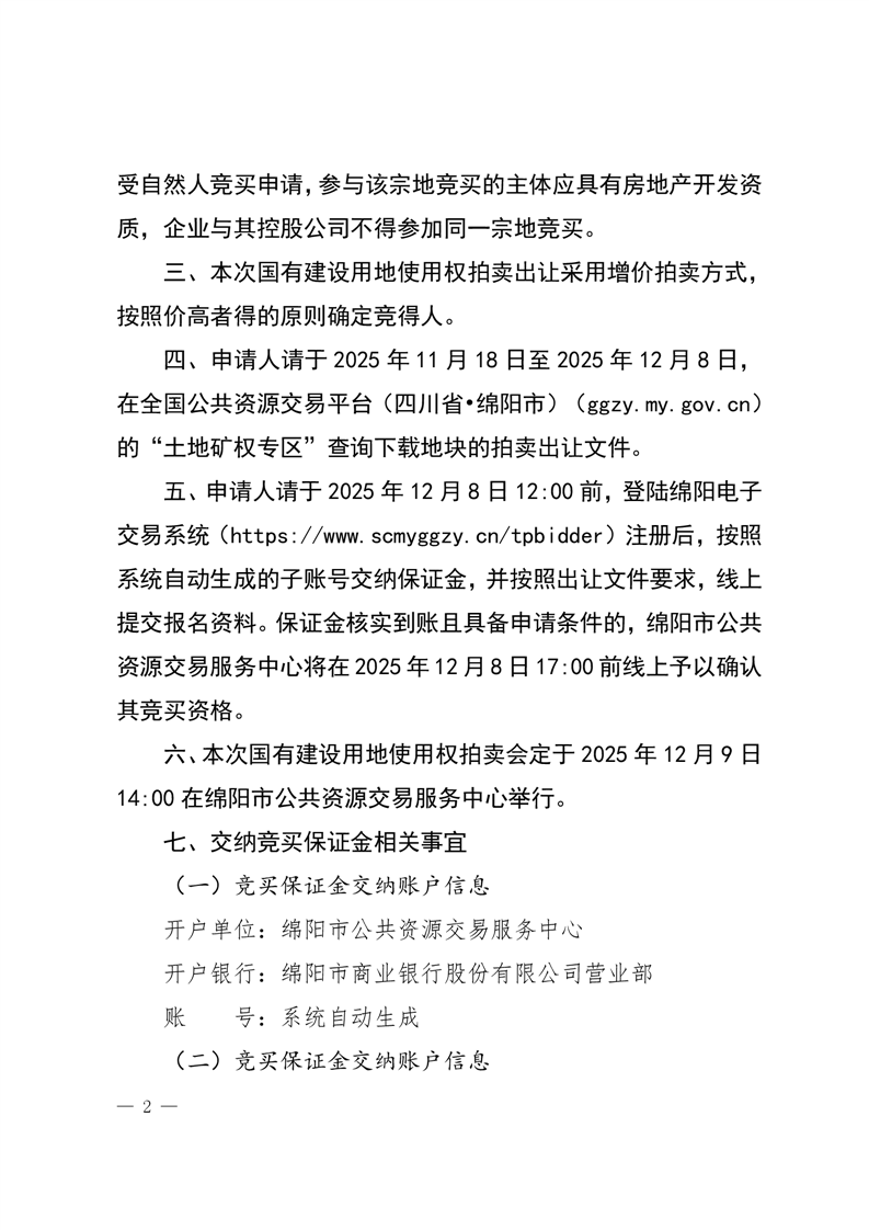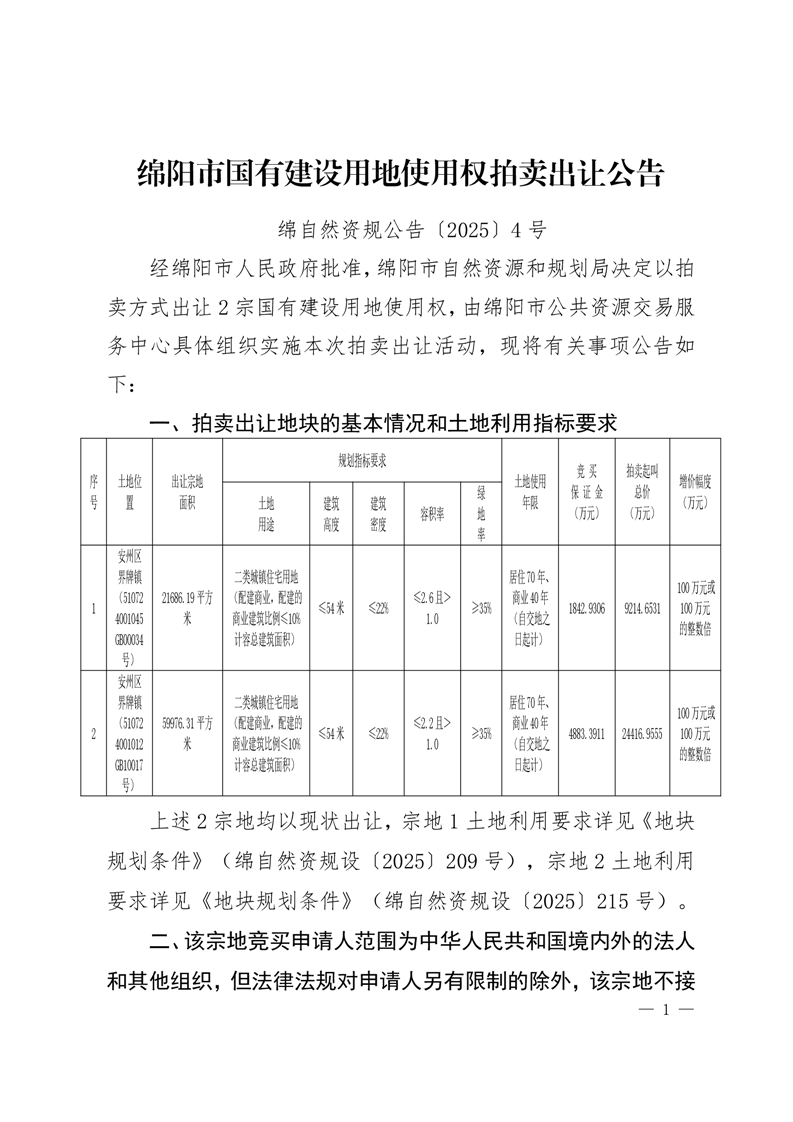 綿陽市國有建設(shè)用地使用權(quán)拍賣出讓公告(綿自然資規(guī)公告〔2025〕4號)