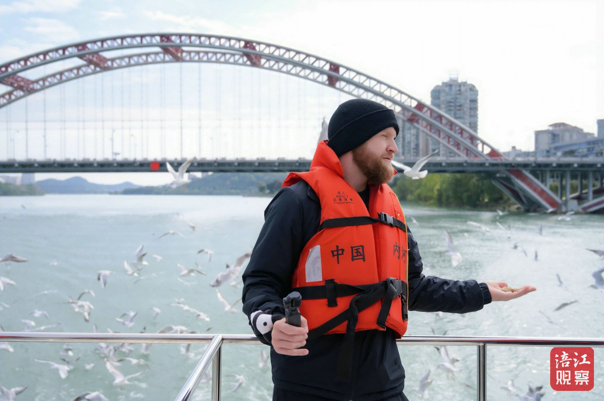 行程尾聲,外賓游覽三江碼頭,欣賞涪江、安昌江與芙蓉溪交匯處的生態(tài)景觀。初冬時(shí)節(jié),西伯利亞紅嘴鷗成群翩躚,展現(xiàn)綿陽人與自然和諧共生的城市畫卷。