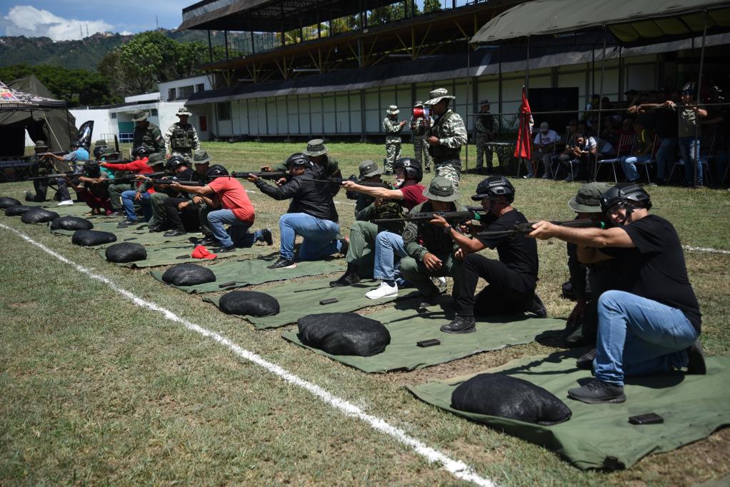 9月13日,委內瑞拉民兵在位于首都加拉加斯的蒂烏納堡陸軍基地進行射擊訓練。新華社發(fā)(薩爾戈多攝)