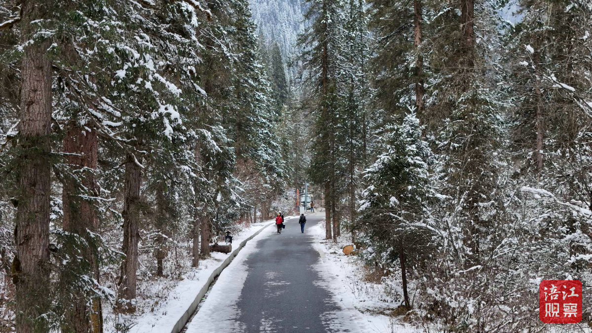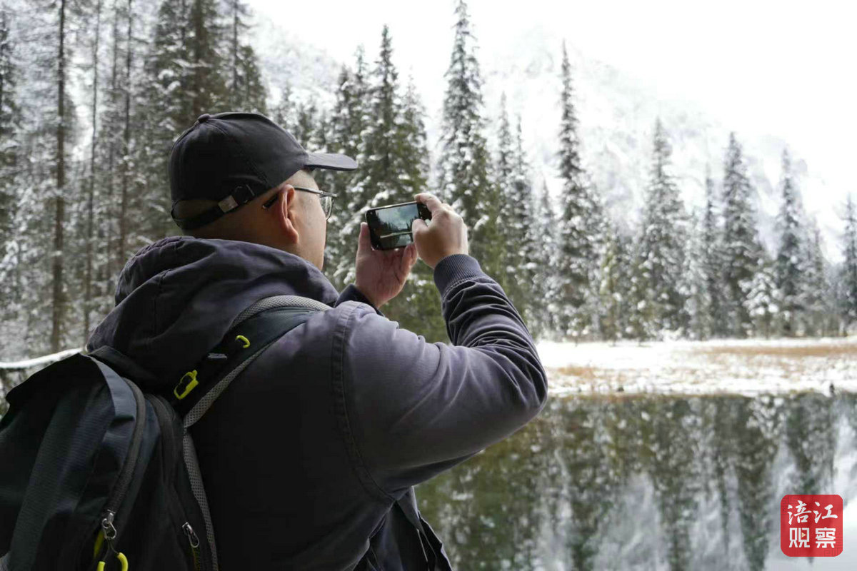 在大熊貓國家公園王朗片區(qū),記者一行先后來到牧羊場和甘海子,經(jīng)過前一天的降雪,王朗已然成為一片潔白的冰雪世界。