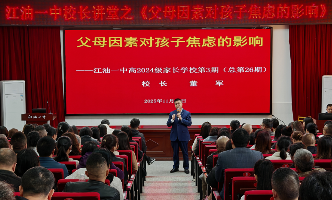 最后,該校黨委副書記、校長(zhǎng)董軍老師開展了題為《父母因素對(duì)孩子焦慮的影響》的專題講座。他結(jié)合教育實(shí)例與心理學(xué)理論,剖析了家庭環(huán)境、親子溝通方式對(duì)孩子情緒狀態(tài)的影響,并提出“以支持為根基、理解為核心、信任為橋梁”的協(xié)作理念。他呼吁家長(zhǎng):“對(duì)孩子多一份耐心,因?yàn)槊恳淮蔚却际浅砷L(zhǎng)的伏筆;對(duì)學(xué)校多一份信任,因?yàn)槊恳环葜С侄际墙逃牧α?rdquo;。同時(shí),董軍還就預(yù)防校園欺凌和家長(zhǎng)進(jìn)行了溝通交流。