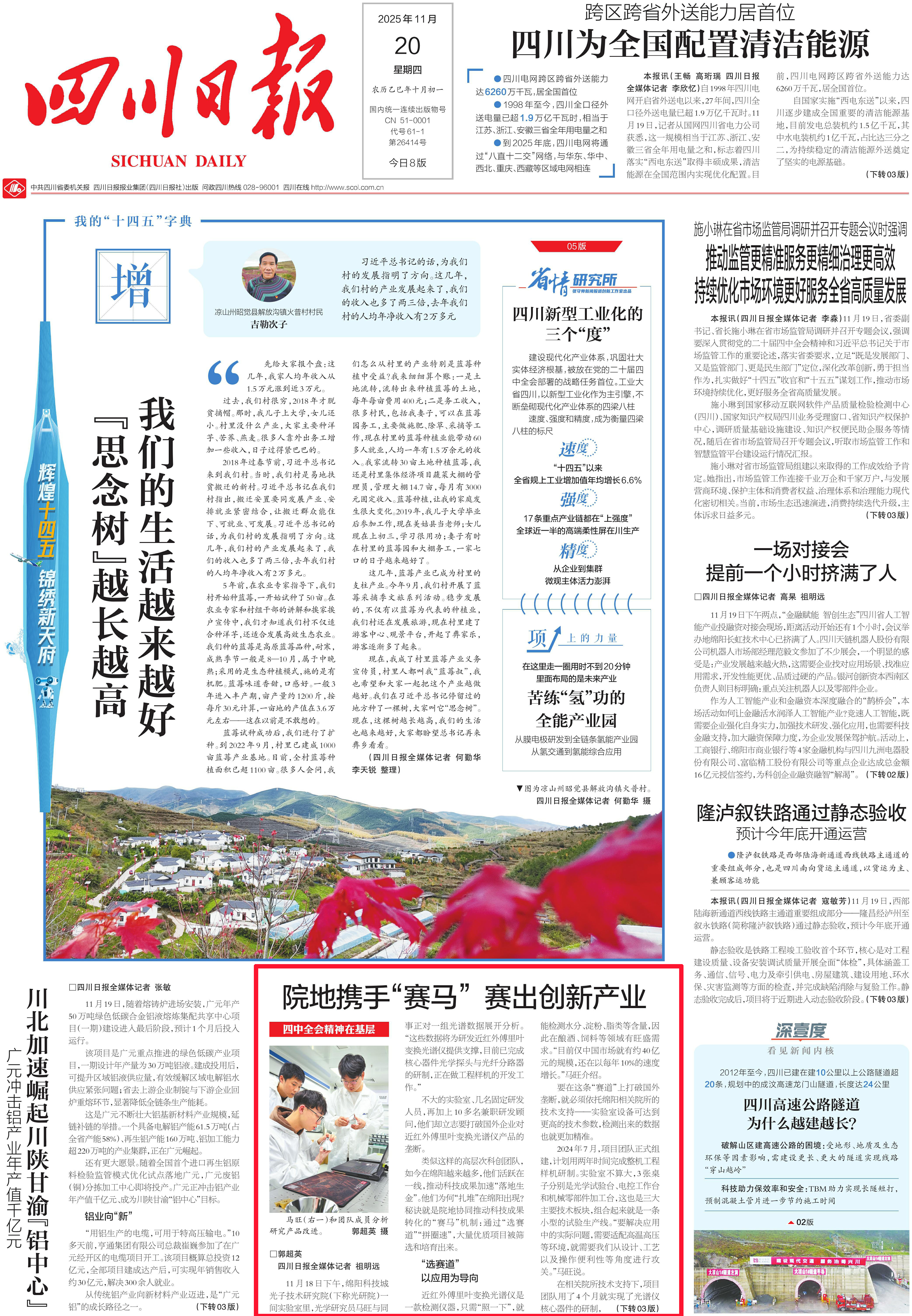 今天(11月20日),《四川日?qǐng)?bào)》頭版以《院地?cái)y手“賽馬” 賽出創(chuàng)新產(chǎn)業(yè)》為題,聚焦綿陽(yáng)院地協(xié)同推動(dòng)科技成果轉(zhuǎn)化的“賽馬”機(jī)制。該機(jī)制通過(guò)“選賽道”“拼圈速”,大量?jī)?yōu)質(zhì)項(xiàng)目被篩選和培育出來(lái)。全文報(bào)道如下: