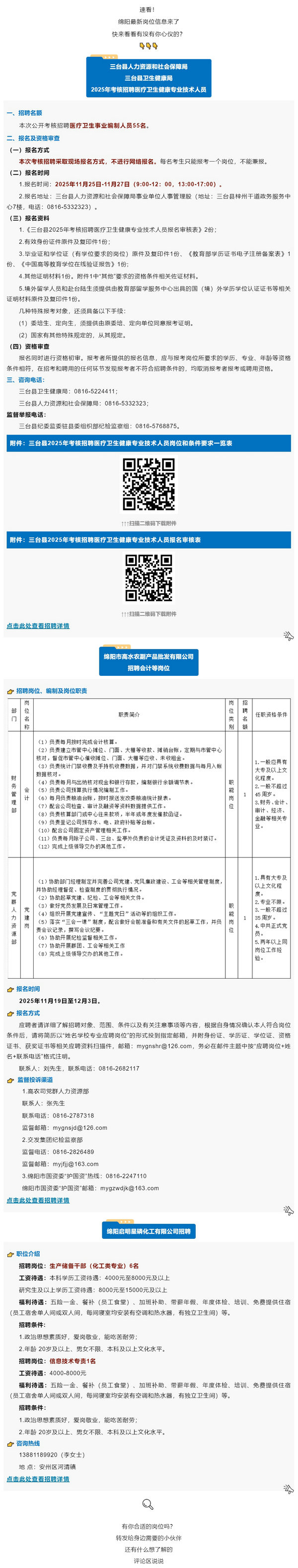 每日送崗|綿陽公開招聘(部分有編制),找工作的速來→