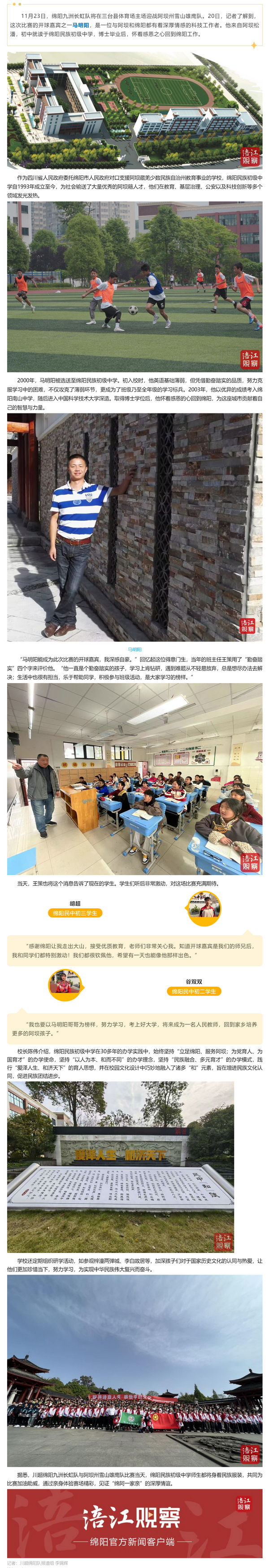 11月23日川超綿陽VS阿壩,馬明陽將開球,母校師生“很激動(dòng)”