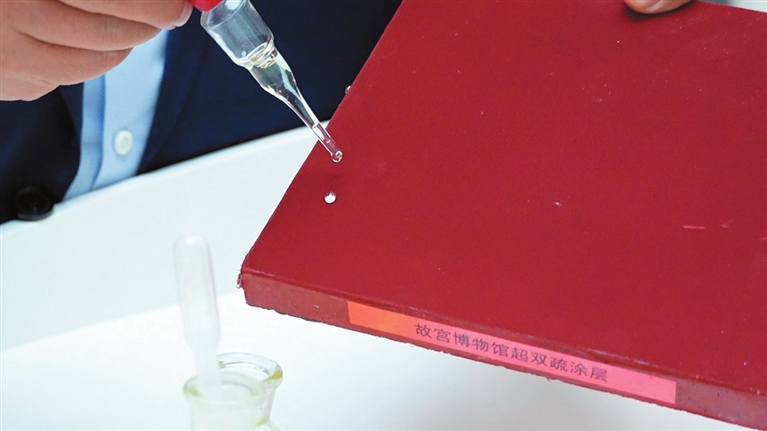 近日,記者走進(jìn)位于安州高新區(qū)的綿陽(yáng)麥思威爾科技有限公司。在其展廳內(nèi),一塊看似普通的紅色磚塊,其側(cè)面的“故宮博物院超雙疏涂層”字樣,昭示著其不凡的身份。“這就是即將走進(jìn)故宮的紅磚樣本,上面這層顏色鮮艷的涂層,應(yīng)用了我們研發(fā)的超雙疏抗污納米涂層技術(shù)。”工作人員現(xiàn)場(chǎng)進(jìn)行了一場(chǎng)直觀演示:他將一管自來(lái)水全部滴在紅磚表面,水流瞬間凝聚成珠,如同在荷葉上一般迅速滾落,磚面即刻恢復(fù)干燥,未留下任何水痕;緊接著,更具挑戰(zhàn)性的測(cè)試展開——一管濃稠的菜籽油滴落其上,油滴同樣無(wú)法附著,沿著涂層表面絲滑滾落。