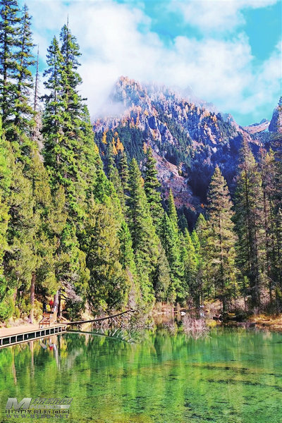 平武天母湖畔的彩林像天然調(diào)色盤?! ∮浾?任露瀟 攝
