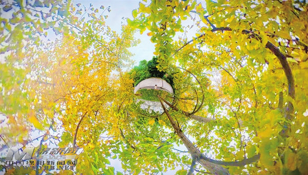 富樂山公園銀杏滿樹披金,市民打卡拍照?! ∮浾?王勇 攝