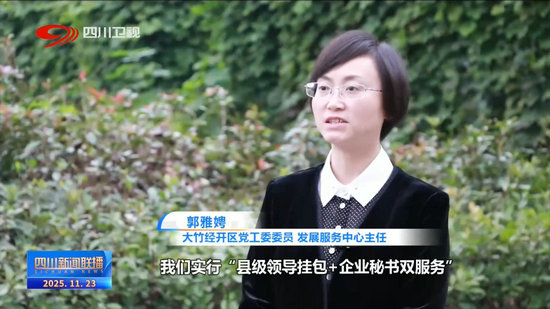 大竹經(jīng)開區(qū)黨工委委員、發(fā)展服務(wù)中心主任 郭雅娉:我們實行“縣級領(lǐng)導(dǎo)掛包+企業(yè)秘書雙服務(wù)”。今年,已收集解決資料審批、要素保障、融資需求等訴求126件,不僅縮短了項目投產(chǎn)、達產(chǎn)時間,也讓我們民營企業(yè)感受到大竹產(chǎn)業(yè)發(fā)展的誠意。