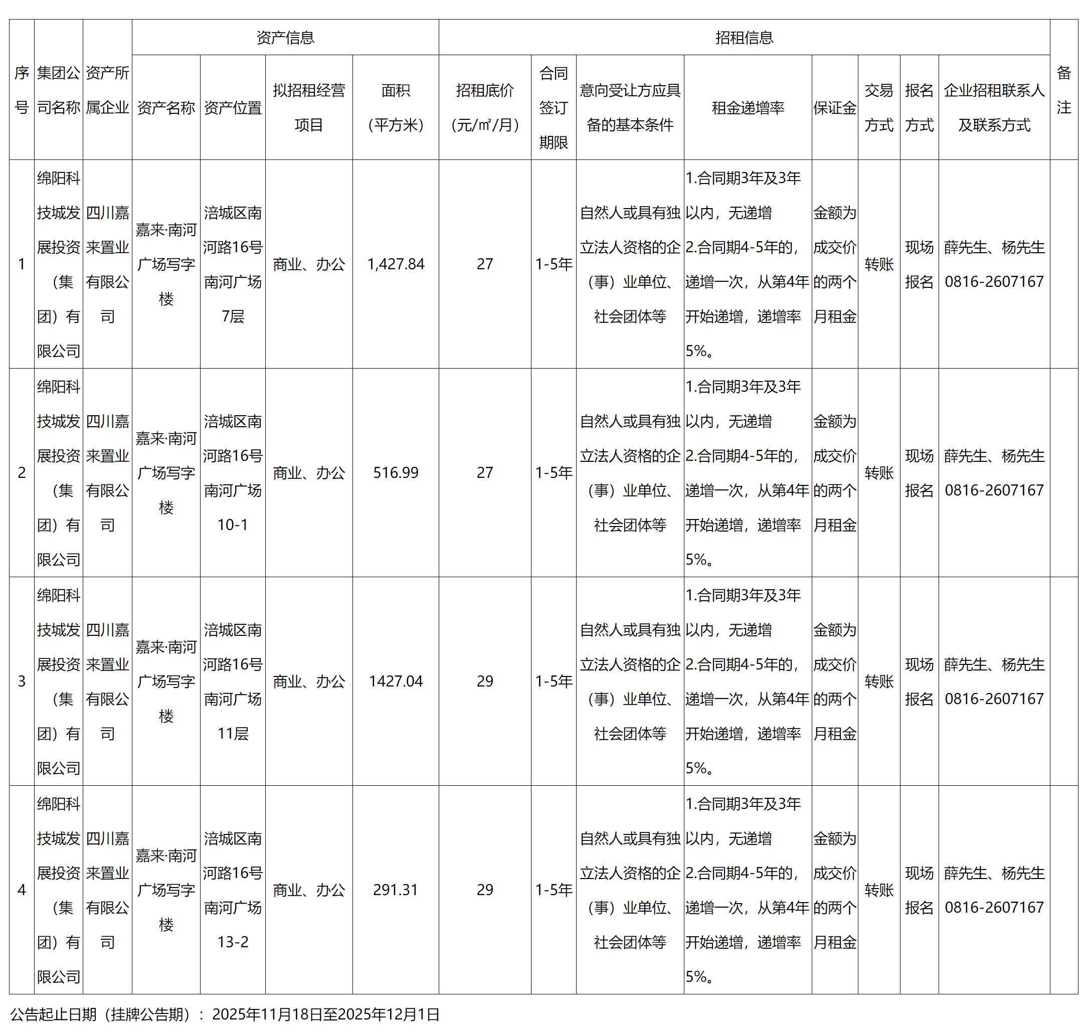 四川嘉來置業(yè)有限公司資產(chǎn)出租公告