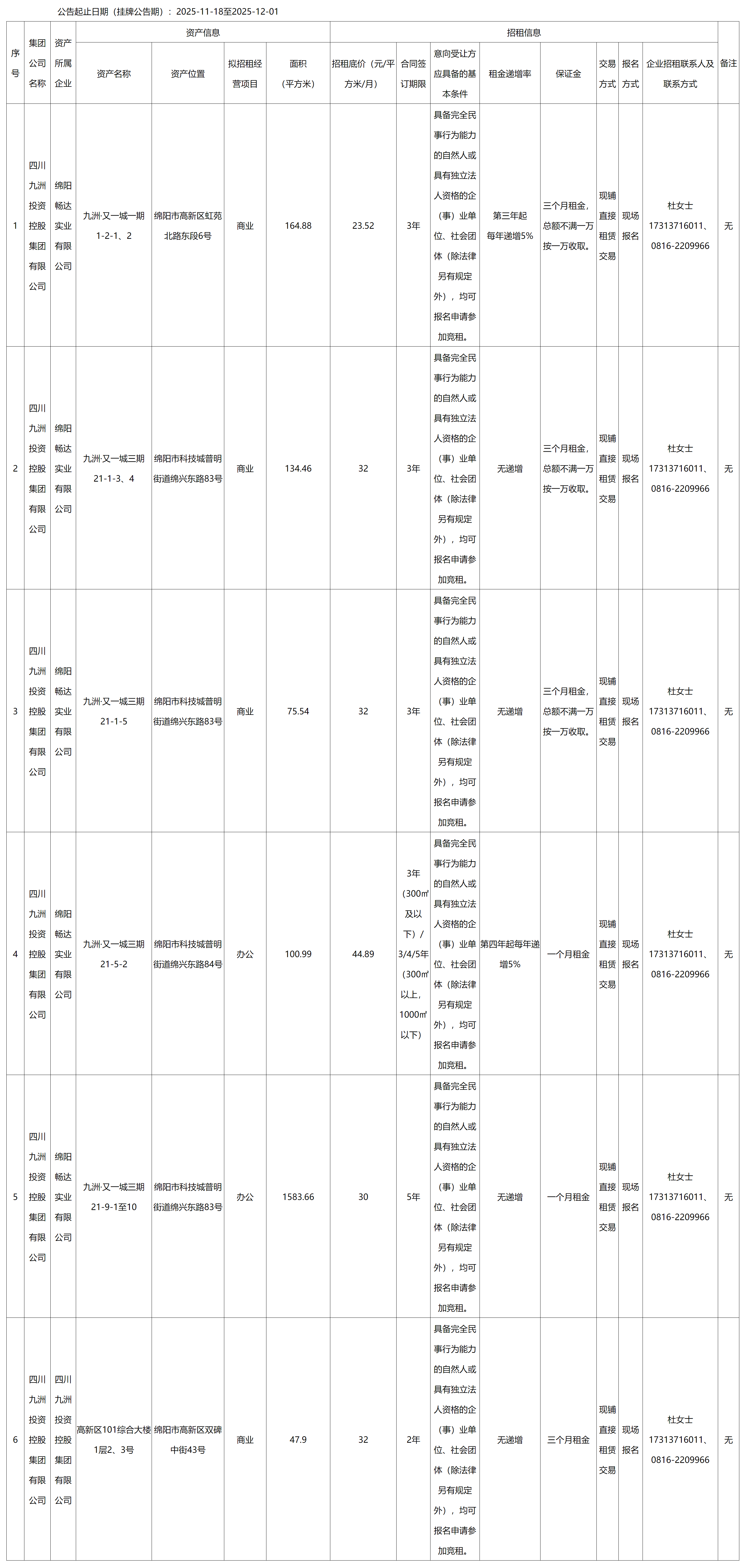 四川九洲千城商業(yè)管理有限公司高新項目部九洲·又一城項目、608家屬區(qū)101綜合大樓商鋪出租公告