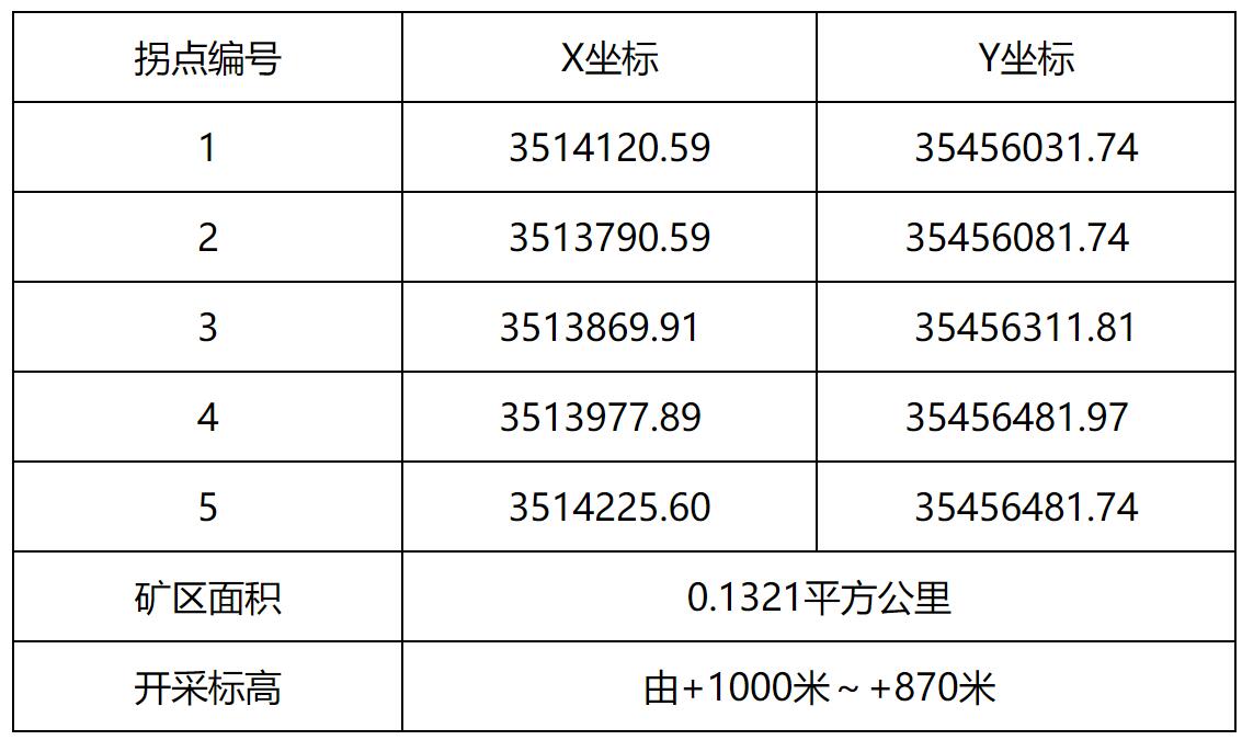 開采范圍:0.1321平方公里,拐點(diǎn)坐標(biāo)如下(2000國家大地坐標(biāo)):