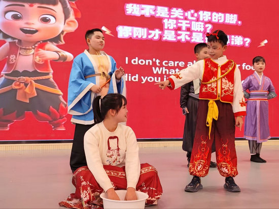 一年級以合唱《Hello & Baby Shark》《Big Big World》帶來萌趣開場,稚嫩聲線里滿是對英語的熱愛;五年級用情景劇《Ne Zha》《The Mid-Autumn Festival》將中國傳統(tǒng)神話故事與英語表演相結(jié)合,既展現(xiàn)了英語的表現(xiàn)力,又弘揚了傳統(tǒng)文化;二年級的說唱串燒《A Little Love》節(jié)奏輕快,將日常英語融入動感旋律;六年級則以《Qiu Shaoyun》《Lu Xun》《Hua Mulan》主題演講搭配才藝秀,讓紅色故事、經(jīng)典人物通過英語傳遞出別樣感染力;四年級的故事串燒《Monkeys’ Adventures & A Brave Heroine》帶大家走進奇妙的英語世界;三年級合唱《The Hokey Pokey & I Can》,整齊的歌聲體現(xiàn)出他們扎實的英語基礎(chǔ)和集體凝聚力。最后,一首動聽的《Proud of You》溫暖全場。