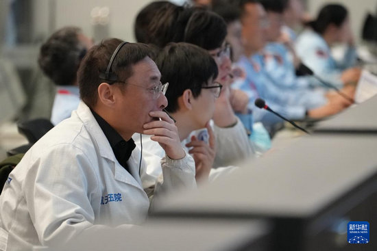 11月25日,北京航天飛行控制中心,現(xiàn)場工作人員在監(jiān)測神舟二十二號飛船與空間站組合體交會對接情況。新華社記者 王春濤 攝