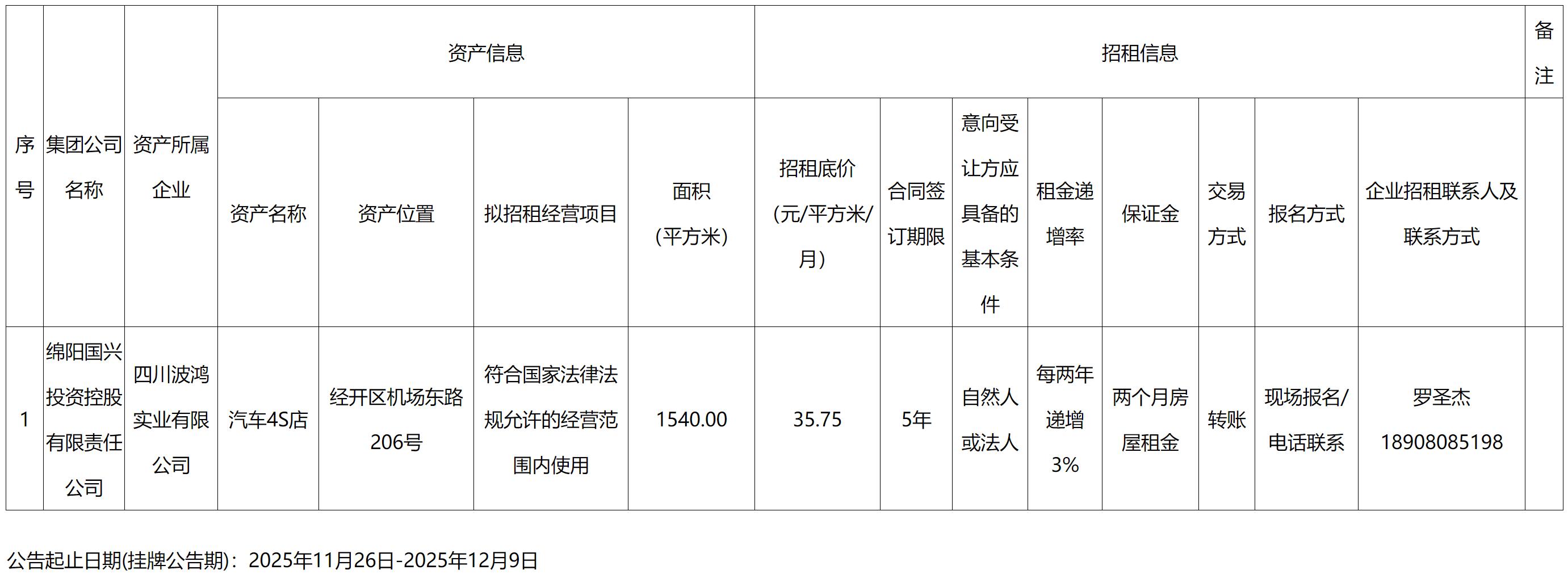 綿陽(yáng)國(guó)興投資控股有限責(zé)任公司資產(chǎn)出租公告