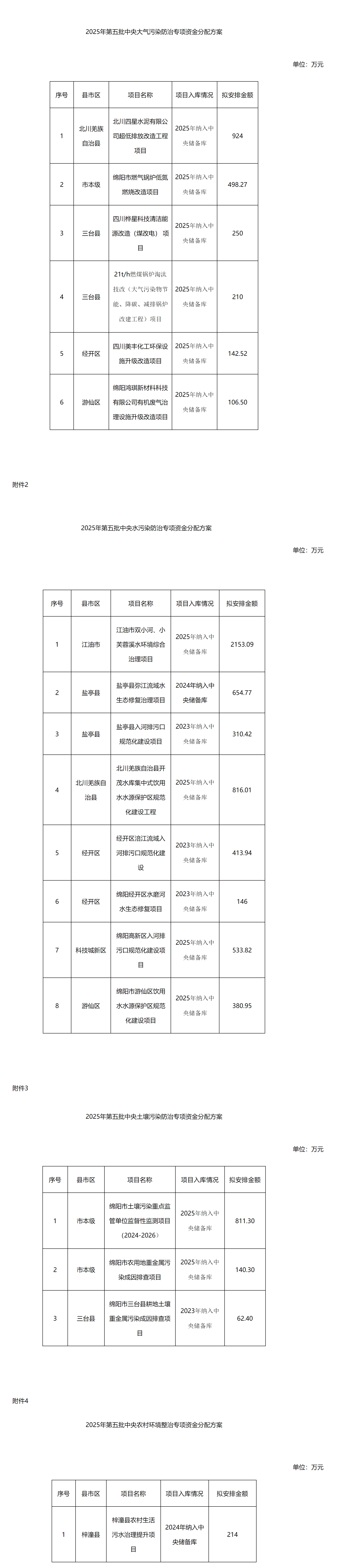 附件:1.2025年第五批中央大氣污染防治專項(xiàng)資金分配方案