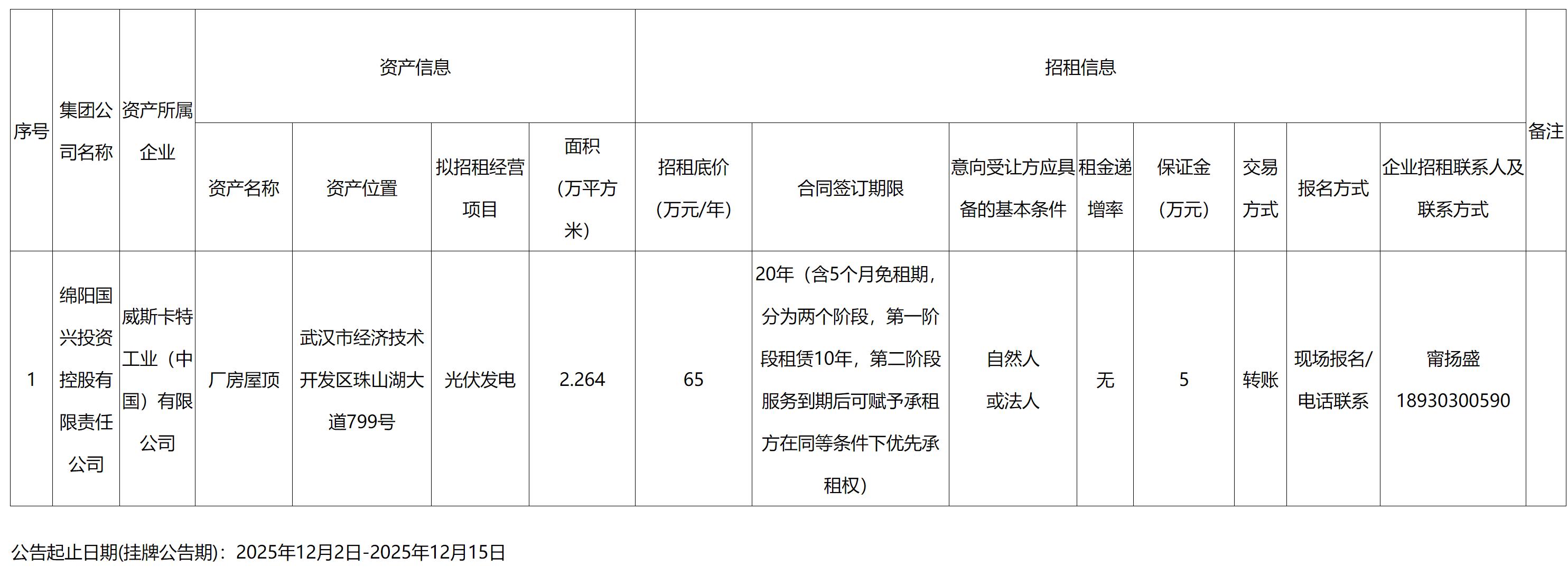 綿陽(yáng)國(guó)興投資控股有限責(zé)任公司資產(chǎn)出租公告