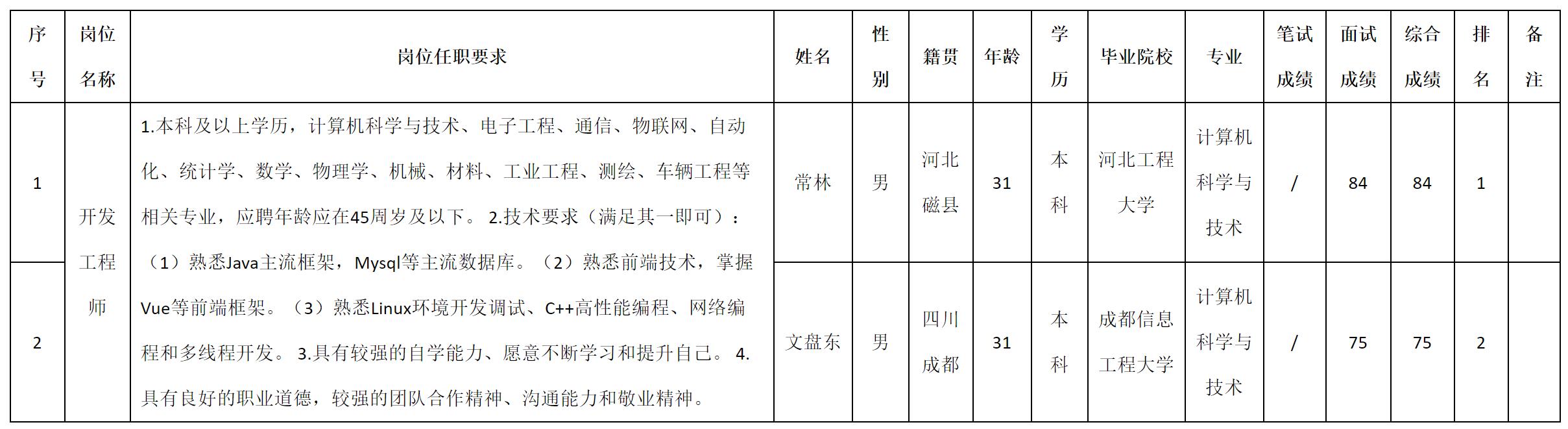 根據(jù)四川九洲投資控股集團(tuán)有限公司軟件與數(shù)據(jù)智能軍團(tuán)發(fā)布的招聘公告及招聘相關(guān)規(guī)定,現(xiàn)將測試成績予以公示。