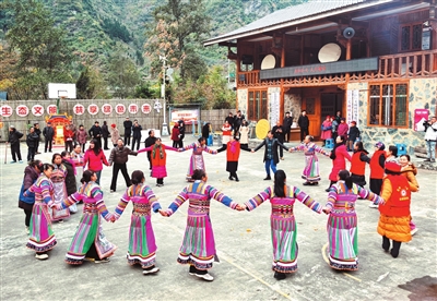 木皮藏族鄉(xiāng)關壩村以群眾喜聞樂見的形式,將文明理念、政策知識融入文化體驗,讓群眾參與其中。