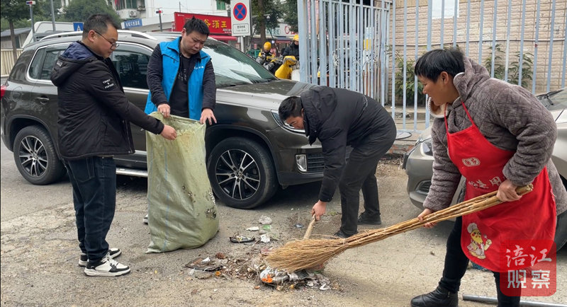 社區(qū)居委會組織網(wǎng)格員和周邊商戶開展集中清掃行動