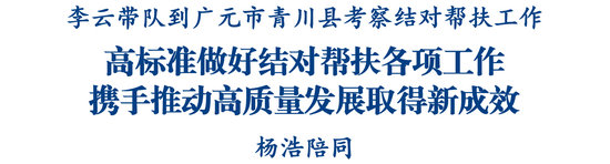 考察中,李云聽(tīng)取了結(jié)對(duì)幫扶工作開(kāi)展情況。他說(shuō),綿陽(yáng)與廣元是山水相連的好鄰居,是攜手前行的好伙伴,特別是結(jié)對(duì)幫扶青川以來(lái),兩地深入貫徹中央和省市部署要求,密切交流、深度合作,推動(dòng)結(jié)對(duì)幫扶工作取得明顯成效。下一步,綿陽(yáng)將堅(jiān)決落實(shí)結(jié)對(duì)幫扶政治責(zé)任,與廣元、與青川一道同心同向、攜手共進(jìn),努力取得更加豐碩的幫扶成果。希望綿廣兩地深化在產(chǎn)業(yè)發(fā)展協(xié)作、干部人才培育、基礎(chǔ)設(shè)施共建、文旅融合發(fā)展、公共服務(wù)共享等方面的合作,攜手推動(dòng)高質(zhì)量發(fā)展取得新成效。
