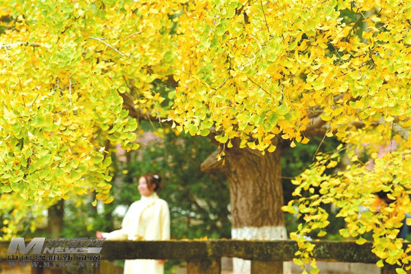 銀杏鋪展出金色畫卷,暈染出了一幅溫柔圖景。記者 王勇 攝